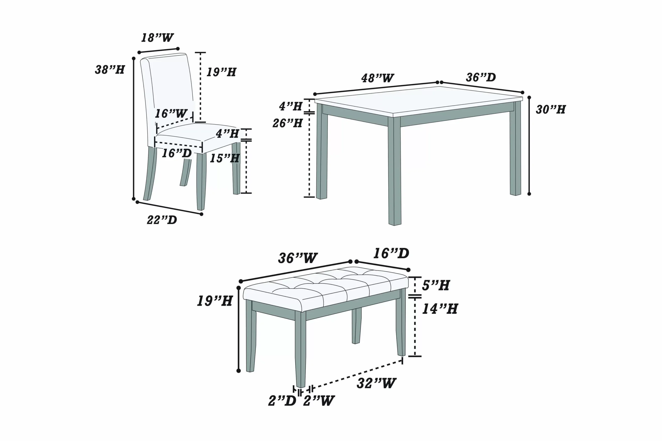 El conjunto de asientos incluye tres sillas sin brazos y un banco espacioso, lo que ofrece flexibilidad para comer, entretener o relajarse de manera casual. Cada silla está cuidadosamente diseñada con un respaldo completo de apoyo y tapizada en piel sintética suave, aportando comodidad y un toque refinado. El acolchado brinda una experiencia de comedor acogedora, mientras que la tapicería elegante realza la estética sofisticada del conjunto. El banco es una alternativa moderna a las sillas tradicionales, ideal para acomodar fácilmente a niños o invitados adicionales.