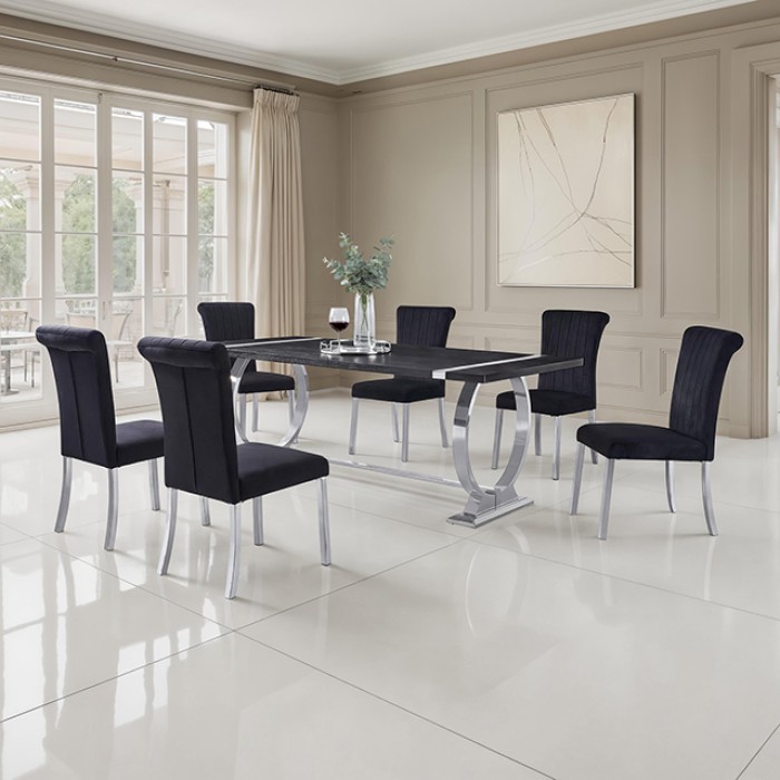 GlamSilver/Black Acero, Madera de ingeniería, Espuma, Tela Acero inoxidable Pata en forma de O con base de caballete Asiento trasero con capitoné canalizado